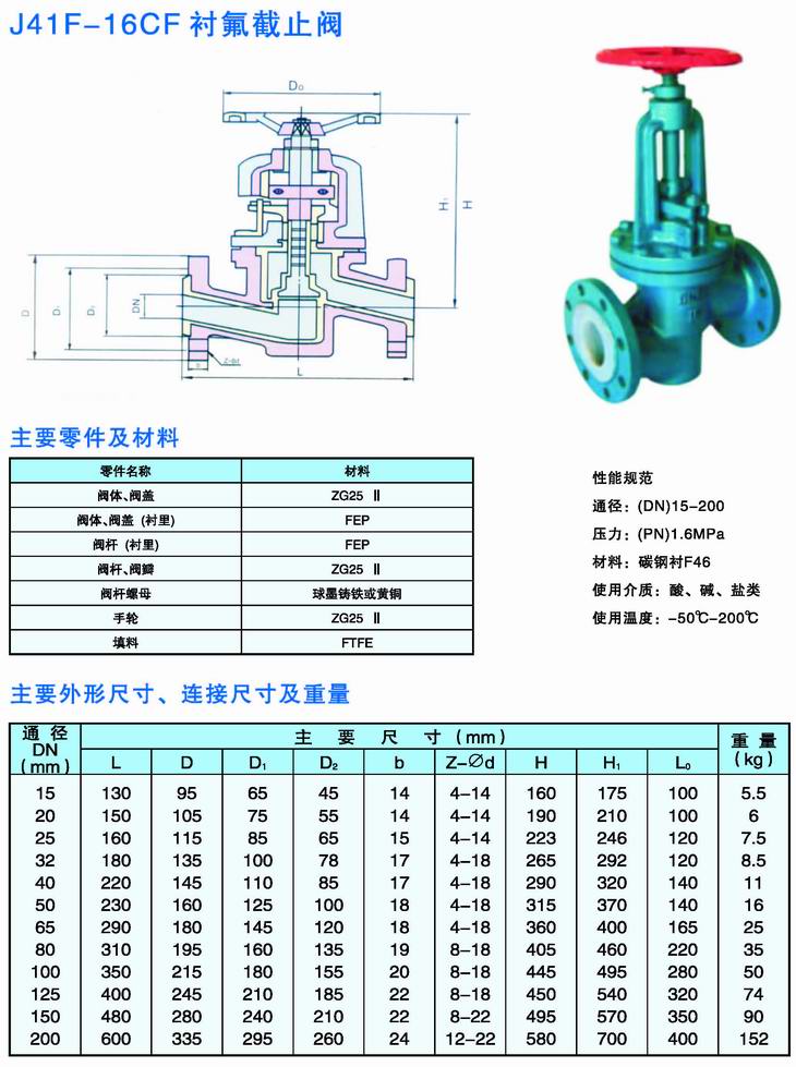 J41F-16CF襯氟截止閥